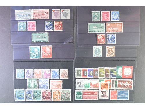 Germany, mixed. Collection ★★ 1949–1967 in album. GFR and Berlin never hinged in Schaubek album GFR looks complete except for Posthorn set. Berlin missing some early stamps. Please see a selection of scans at www.philea.se. Mostly fine quality. (500–600) Show less