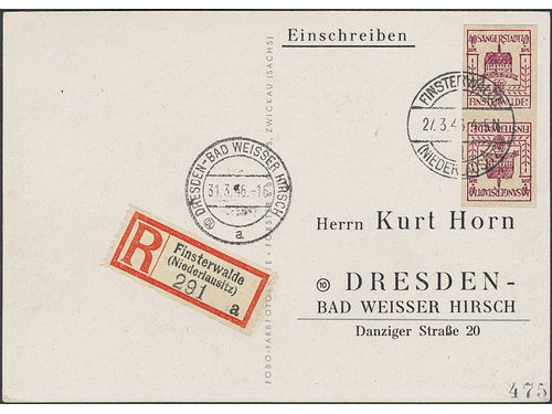 Germany, Saxony. Covers. Ten covers, money orders and postal stationeries (some unused) franked with blackened Hitler stamps. The entire lot is presented at www.philea.se. Show less