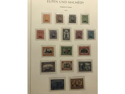 Germany, mixed. ★★/★/⊙. Collection Occupation WW1 and 2 on Leuchtturm leaves 1914-43 incl. e.g. better EUPEN & Malmedy and Etappengebiet West Mi1-12 etc. Please see a selection of scans at www.philea.se. (270) Show less
