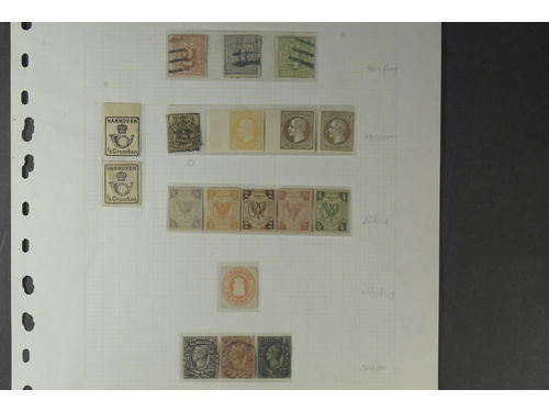 Germany, mixed. Accumulation ★★/★/⊙ 1850–1919 on leaves. Interesting material from Hamburg, Hannover, Lübeck and Sachsen..