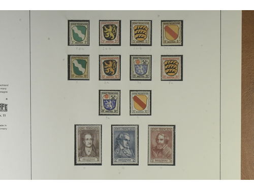 Germany, mixed. Collection ★★/★/⊙ ca. 1945–1949 in album with e.g. Deutsche Post, Baden and Rheinland-Pfalz. Please see a selection of scans at www.philea.se. Show less