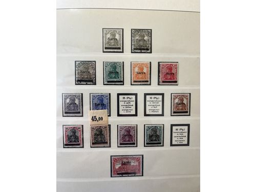 Germany, mixed. Accumulation ★★/★/⊙ 1850–1919 on leaves. Interesting material from Hamburg, Hannover, Lübeck and Sachsen. Most material from Bavaria but also stamps from German colonies, referendum areas after WW I, SAAR and more. Very diversified. Please see a selection of scans at www.philea.se. Somewhat mixed quality. (>200) Show less