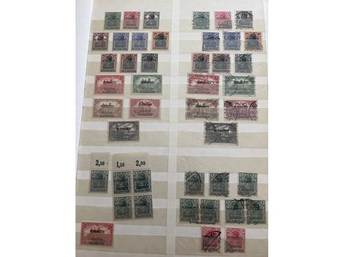 Germany, mixed. ★★/★/⊙. Old binder with about 900–1000 stamps. Mostly occupation WW1–2, colonies, post abroad, some Memel and Reich, etc. Please see a selection of scans at www.philea.se. Show less