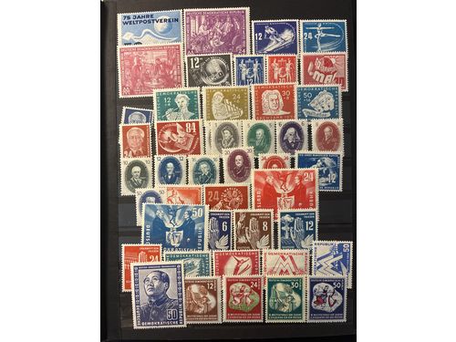Germany, mixed. Collection/accumulation used 1946–2002 in two stockbooks. DDR 1979-1990, BRD 1949-2000, Berlin West and some Zone, often many stamps of each. Please see a selection of scans at www.philea.se. Mostly good quality. (9000) Show less