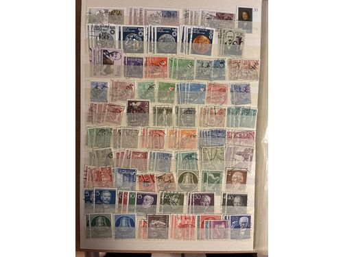 Germany, mixed. Accumulation ★★/★/⊙ 1949–1990 in box. Eight albums and stockbooks with many 1000s of stamps with many different incl. some a bit better. Approx. 17 kg. Show less