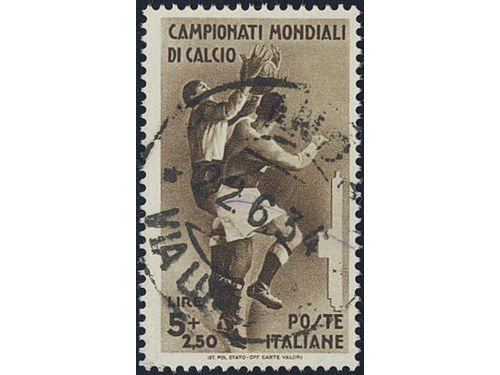 Italy. Michel 483 used, 1934 Football Champ. 5 + 2.50 L dark brown. EUR 260