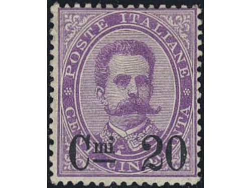 Italy. Michel 57 (★), 1890 Overprint on King Umberto I 20 c / 50 c violet. EUR 400 if * Show less