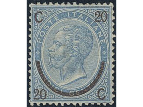 Italy. Michel 25 III ★, 1865 Overprint on Victor Emanuel II 20/15 c pale blue with 12 dots. EUR 550 Show less