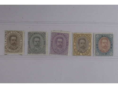 Italy. Michel 50–54 ★, 1889 King Umberto I SET (5). A few shorter perfs on 40 c, 1 and 5 L. EUR 1800 Show less