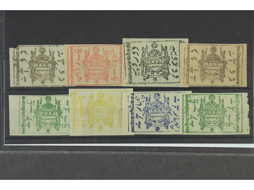 India, Jammu and Kashmir. Telegraph stamps Michel T1–8 (★), 1884–87 short set missing the two most expensive stamps (8). EUR SG 41,5 Show less
