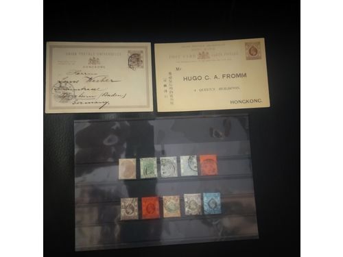 Hong Kong. Lot used. Lot Victoria - Edward 10 stamps and 2 postal stationary cards. Good quality.