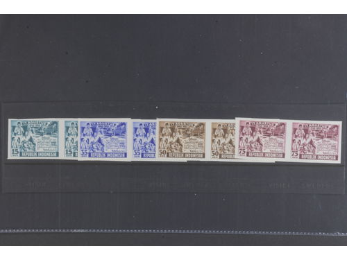 Indonesia. Michel 143–46 ★★, 1955 Republoc 10 years SET imperf proofs in pairs. Catalogue value €1500. Show less
