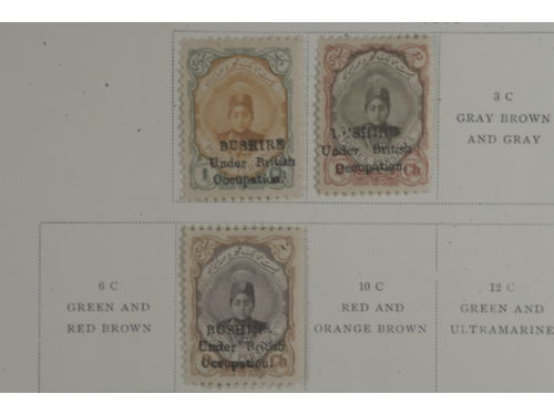 India. ★/⊙. Bushire British Occupation 1915 1c, 2c and 9c unused, all signed, plus earlier India used in Bushire QV/KGV. Show less