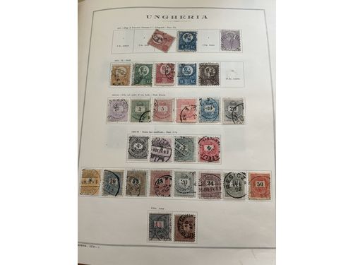 Hungary. Collection used 1871–1942 in stockbook. Well filled collection. Starts with Franz Joseph stdr set. Letters with denomination up to 3 Ft, Turul and Franz Joseph incl. many watermarks and overprints. Later isssues includes Patrona set ,1933 Air Mail set (propeller), M/S Mi BL1, 2–3 and 5–6. Mostly fine quality. (400) Show less