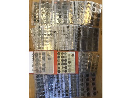 Coins, ALL WORLD. Box with coins on several leaves, two albums and Lembit Coin box, etc. old–modern. E.g. much Switzerland incl. 50 2-Fr and 31 1-Fr, etc. Please see a selection of scans at www.philea.se. Approx. 19 kg. Show less