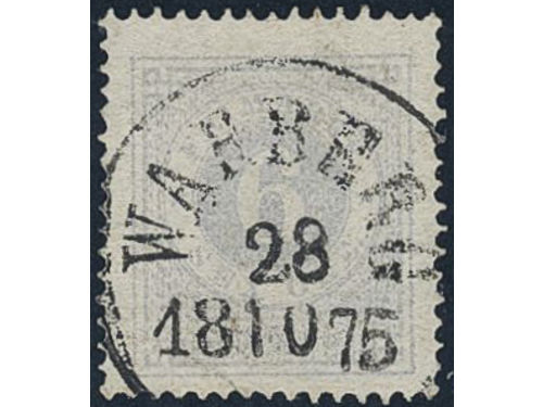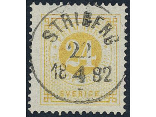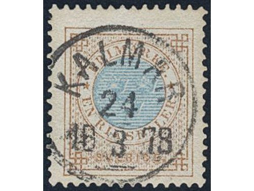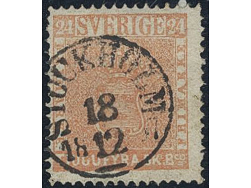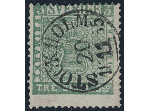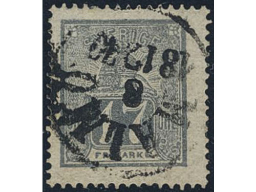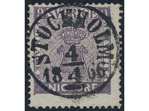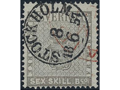 Sweden. Facit 20j v8 used, 6 öre lilac, coloured line in margin variety. EXCELLENT cancellation STOCKHOLM 26.2.1876. SEK 700 Show less