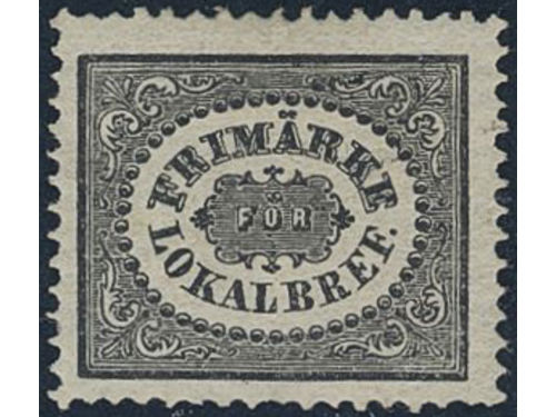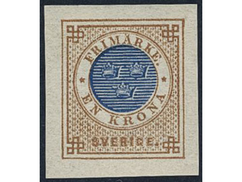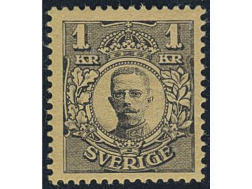 Sweden. Facit 77vm9 ★, 1 Krona black with parts of two inverted crowns horizontally. Extremely rare – according to Facit only one known.