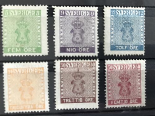 Sweden. Facit 7–12 ★, Beautiful set (6) however 9 öre with some short perf. SEK 20500 Show less