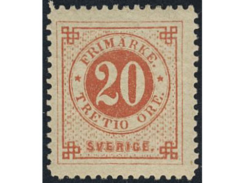 Sweden. Facit 33v1 F ★, 20/TRETIO öre Fournier forgery. Very fresh and beautiful.