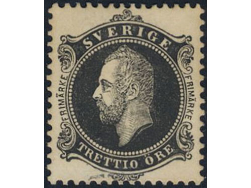 Sweden. Facit 16, 99 (★), C A Nymans proposal stamp TRETTIO öre in black colour with smooth background. Show less