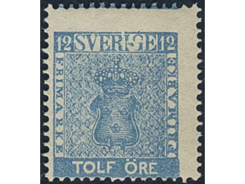 Sweden. Facit 9v13 ★, 12 öre blue-greenish blue with 'dot in 'G' variety'. Very unusual in mint condition, without price in Facit.