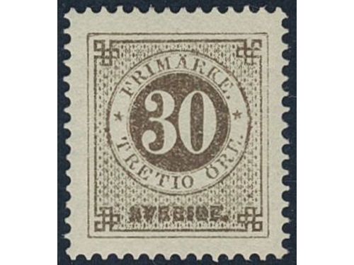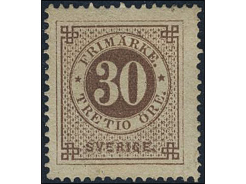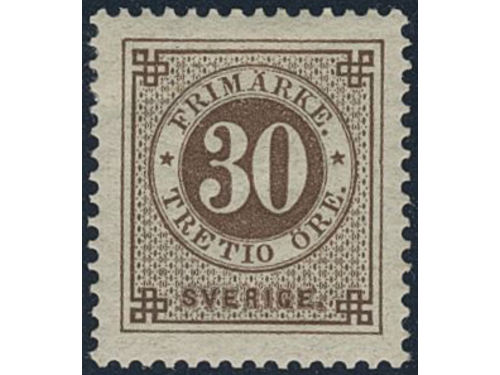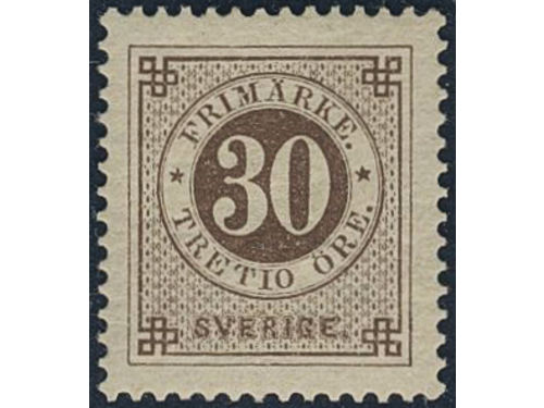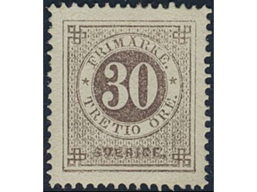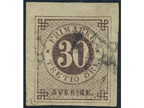 Sweden. Facit 35v1 used, 30 öre brown, imperf variety, with three wide margins. Small fold and tear. Certificate HOW 1, 3, 1 (2011). SEK 25000 Show less