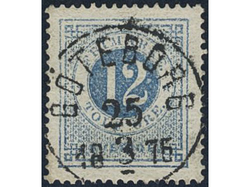 Sweden. Facit 21m used, 12 öre blue. EXCELLENT cancellation GÖTEBORG 25.3.1875. Signed by O.P.
