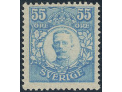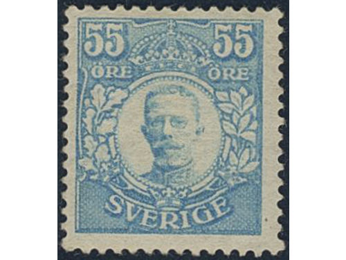 Sweden. Facit 92 ★, 55 öre without watermark, light blue. Cert. HOW 3,3,3. 'Ett vackert och fräscht exemplar'. Show less