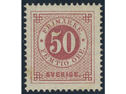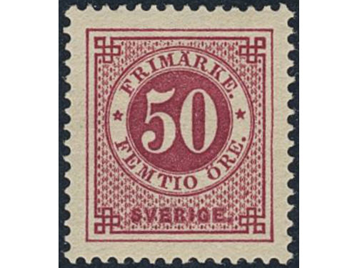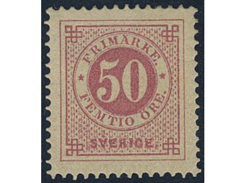 Sweden. Facit 36b ★, 50 öre carmine-rose. Superb example with EXCELLENT centering. The gum somehat moisture affected. Ve..