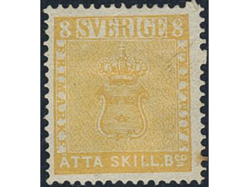 Sweden. Facit 4 IIE2 ★, 8 skill orange-yellow, 2nd reprint. Dense background. Good centering. Owners mark, large part og. Show less