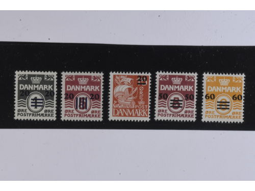 The Faroes. Facit 4–8 ★★, 1940 Surcharge on Wavy-lines SET (5). SEK 8500 Show less