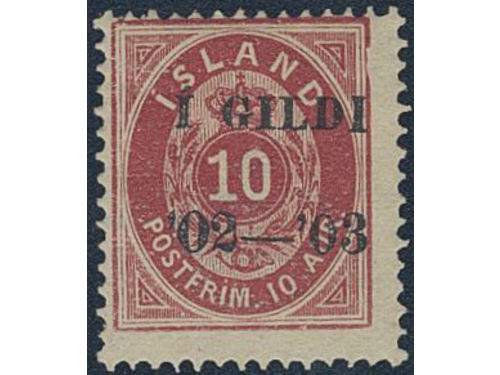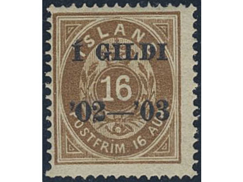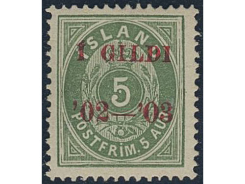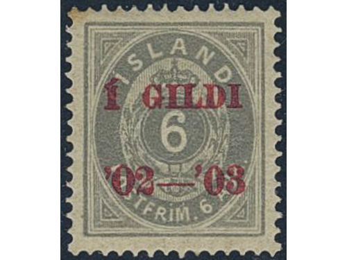 Iceland. Official Facit Tj22 used, 1902 Overprint Í GILDI '02-'03 4 aur grey, perf 12¾. Part of overprint 02-03 missing..