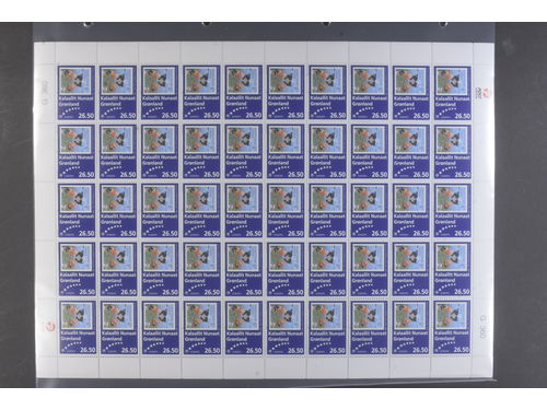 Greenland. Facit 448 ★★, 2006 50th anniversary of Europa stamps 26.50 kr (1). Lot with 20 full sheets of fifty stamps. Face value DKK 26500.