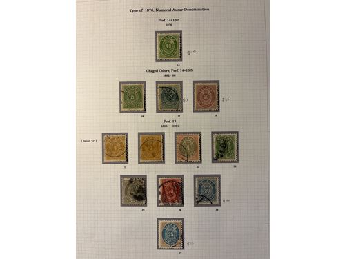 Iceland. Collection used 1876–1954 on home made leaves. Several better as 40 aur perf 14 x13½ * and 10 Kr Christian X used 1931. The entire lot is presented at www.philea.se. Mostly fine quality. Show less