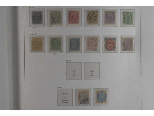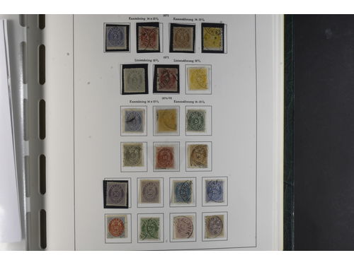 Iceland. Collection mostly used 1873–1996 in Leuchtturm album. Almost complete collection, just missing a couple of þrir and the most expensive I gildi stamps. Quite mixed condition. 2 sk no gum, 8 sk no gum, 4 sk line perforation thin, includes 3 þrir stamps (36 with cert.) from Kings incl. Hopflu Itala (cert. Nielsen Mint) to late ca. 1990 complete in main numbers incl. officials except Fa1. Mixed mint and mostly used through the whole collection. Viewing is recommended the quality is rather mixed and several stamps have "Tollur" cancels. Somewhat mixed quality. (900+) Show less