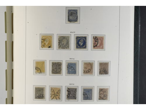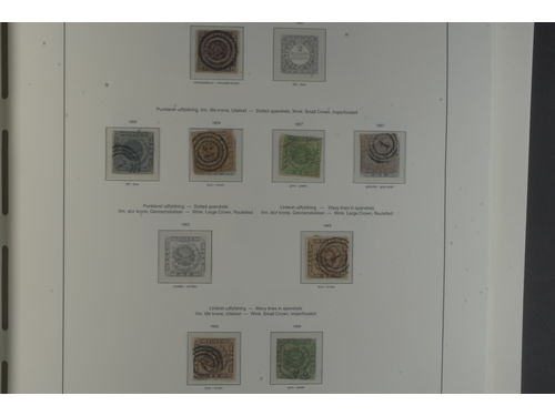 Denmark. Collection mostly used 1851–2001 in Leuchtturm album with stamp mounts. Well filled with skillings in rather mixed condition. Later fine with several better stamps and sets. e.g. Airmails and both G.P.O. Please see a selection of scans at www.philea.se. Mostly good quality. (c800) Show less