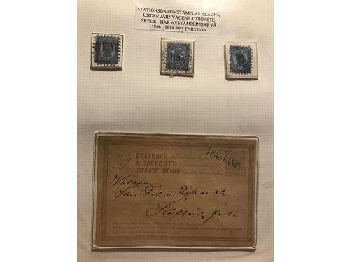 Finland. Cancellations. Collection Finnish railway post 1860s–ca. 1900 in two binders. Containing about 85 stamps and 95 covers/postal stationeries incl. many better ones. Please see a selection of scans at www.philea.se. Show less
