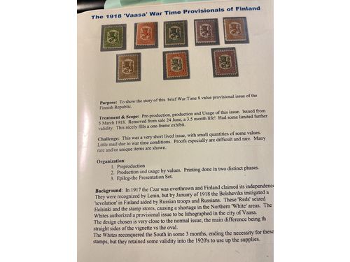 Finland. Collection ★★/★/⊙ 1918 in album. Exhibition monted for one frame 'The Vaasa War Time Provinsionals of Finland'...