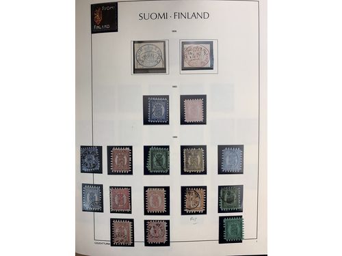 Finland. Collection ★★/★/⊙ 1856–1985 in green Leuchtturm album with home made pockets. Well filled collection. Please see a selection of scans at www.philea.se. Show less