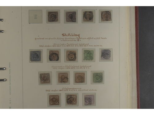 Denmark. Collection ★★/★/⊙ 1851–1985 in Stender album. Nice collection despite some quality issues on some of the most expensive stamps incl. 38 skilling values all are not correctly identified, with better back of the book and airmails. Also Schlesvig and Faroe is. incl. overprints and halved 4o. Last minute entry. Please see a selection of scans at www.philea.se. Somewhat mixed quality. (700) Show less