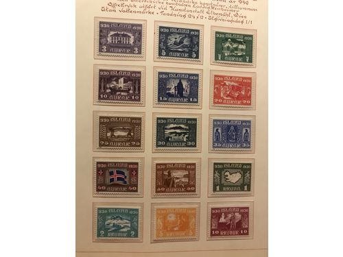 Iceland. ★/⊙. Almost complete old collection 1873–1954, mixed used and mint. Very high value with expensive stamps. E.g. all skilling values – please inspect – two different used prir overprints, 1 and 2 kr Hopflug Italia. In the beginning mixed quality, later fine. Show less