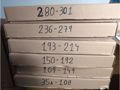 Denmark. ★★. Box with thousands of stamps from Facit 46 to 855, all in envelopes marked with Facit No. Almost all with heavy duplication and several better noted with catalogue value over 200 SEK up to about 1000. E.g. F 117a x 40, and a lot more to be found here! Show less