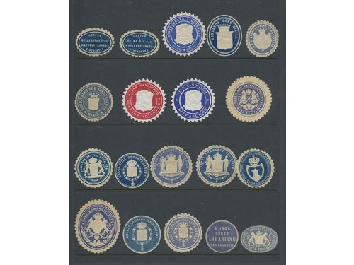 Miscellaneous, Sweden. One hundred and sixty-two Paper seals (papperssigill /"oblater") and twenty-five wax seals. All appears to be different. Almost the entire lot is presented at www.philea.se. (187). Show less