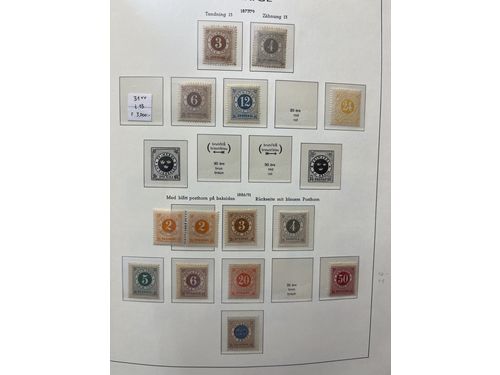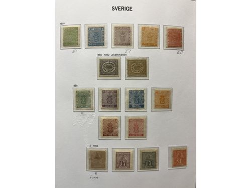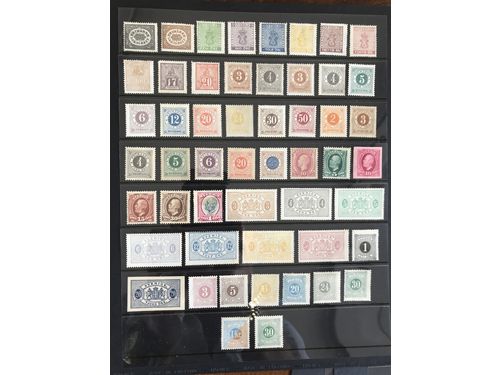 Sweden. ★. Selection with 52 different 1858-Oscar incl. F6+13N1, cpl Coat-of-Arms, nice Circle types, officials and postage due stamps. F15 with short perf., otherwise mostly fine quality. Facit > 96000:-. The entire lot is presented at www.philea.se. Show less