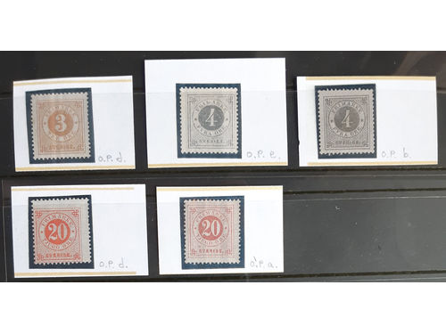 Sweden. Collection ★/(★) CIRCLE TYPE 14. Seven denominations represented incl. different shades, also better – five stamps with opionions (shades) by O.P. Somewhat mixed quality, but also fine, well centered stamps. High catalogue value. Please inspect. (14) Show less