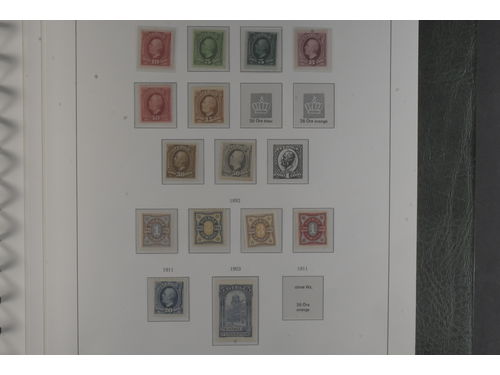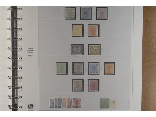 Sweden. Collection ★★/★ 1855–1936 in SAFE album with stamp mounts. Well filled with only very few empty spaces. All skilling values (4th reprint), Coat-of-Arms, Circle types complete in somwhat mixed quality, Oscar, Medallion but without 55 and 80 öre, Landstorm, Post House and 1924. Some certificates are enclosed. Please see a selection of scans at www.philea.se. Fine quality.Collection ★★/★ 1855–1936 in SAFE album with stamp mounts. Well filled with only very few empty spaces. All skilling values (4th reprint), Coat-of-Arms, Circle types complete in somwhat mixed quality, Oscar, Medallion but without 55 and 80 öre, Landstorm, Post House and 1924. Some certificates are enclosed. Please see a selection of scans at www.philea.se. Fine quality. Beskrivning på SVENSKA: Mycket få luckor, bl.a. finns alla skillingar i 4:e eftertrycket, Vapen och Ringtyrck komplett i något blandad kvalitet, både utan gummi och **. Oskar, Medaljong, Landstorm, Posthuset och 1924 års märken i mest bra kvalitet **Show less