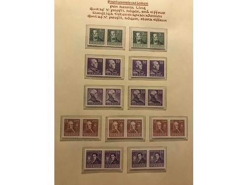 Sweden. Collection ★★ 1938–1948 on leaves. Almost complete with many BC/CB pairs. Good quality. (ca. 150)