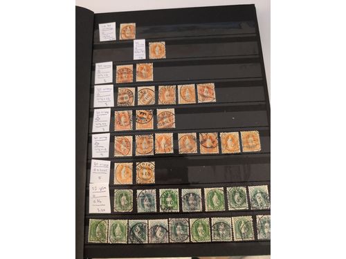 Switzerland. Accumulation used 1882–1993 in box. Standing Helvetias sorted in stockbook with many better stamps, value according to vendor over €7000. One thick stockbook with duplicates and Leuchtturm album with used collection 1964–1993. Somewhat mixed quality. Approx. 6 kg. (1000s) Show less