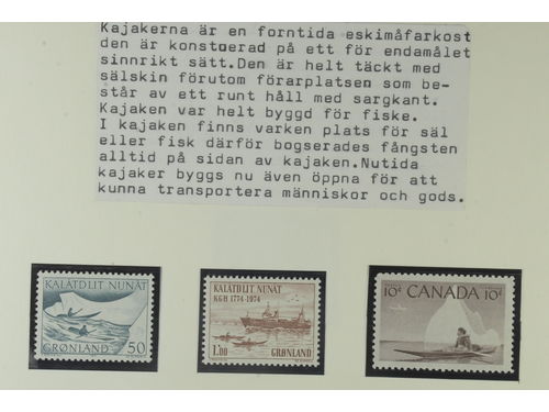 Thematics, Ships. Collection/accumulation ★★/★/⊙ modern in box. Thematic collection, in four albums, about all types of ships, from ancient canoes to modern civilian an military vessels. Also ships used for special purposes or by special organizations are included. Every ship is described with explanatory text. A very fine and interesting material. Please see a selection of scans at www.philea.se. Excellent quality. Approx. 11 kg. (>1000) Show less