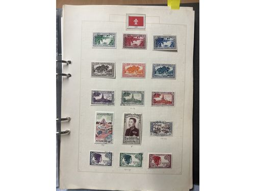 ALL WORLD. Collection/accumulation ★/⊙ 1880s–1970s in box. Album leaves in big box, incl. Japan, Estonia, Lithuania, Norway and many smaller countries in africa and asia. Looks interesting with some a bit better stamps. Please see a selection of scans at www.philea.se. Somewhat mixed quality. Approx. 20 kg. (1000s) Show less